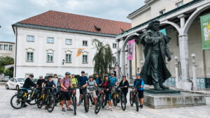 Škofja Loka und die umliegenden Hügel sind wie gemacht für abwechslungsreiche Touren mit dem E-Bike! Da wir heute direkt vom Hotel aus starten, genieße ich vor der Abfahrt in aller Ruhe ein gutes Frühstück in unserer Unterkunft. Nach nur wenigen Kilometern auf dem Fahrrad eröffnet sich vor uns ein beeindruckendes Bergpanorama. Ganz entspannt radeln wir durch verwunschene, einsame Wälder, auch in den kleinen Dörfern entlang der Strecke begegnen wir kaum anderen Menschen. Wir fahren in die Stadt Kranj mit ihrer mittelalterlichen Altstadt und durch das Flusstal der Save zurück nach Škofja Loka. Ich kann kaum glauben, dass wir 37 km in den Beinen haben. Am späten Nachmittag schlendere ich mit einigen Mitreisenden noch durch die hübschen, bunten Gassen des Städtchens und lasse die lebendige Atmosphäre auf mich wirken. (FA)